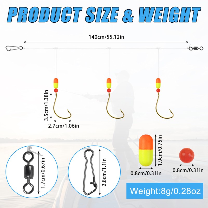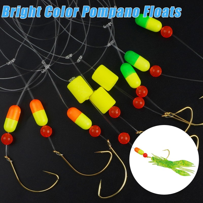 - 【Premium Quality】Pompano Rig kit is tied with 55in mono line, 2/0 gold plated wide gap circle hooks,crane swivel,fishing snap,3/4" pompano floats with 8mm red beads; Swivels and snaps are made with brass and stainless steel with nickel to make your rig strong and rust-resistant for surf fishing. Specially selected bright-colored floats and beads will make your rig significantly more attractive. Sharpened high-carbon steel wide gap hooks will increase your hook-up.