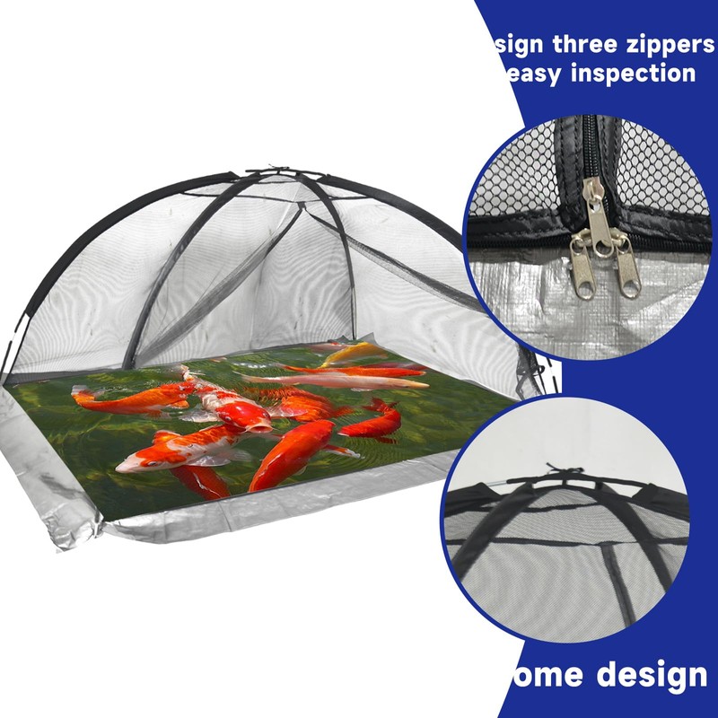 【Garden Pond Cover Dome】The pond net dome comes with a comprehensive set of accessories, including wind ropes, ground nails and storage bags, and simply lays the net over the pond and holds it in place with the included ground nails, which ensure the tent is tightly attached to the ground for added stability and protection against wind gusts. The OKAYES Pond Net Dome ensures that the net cover stays firmly in place even on windy days, providing a comfortable and safe place to rest assured.