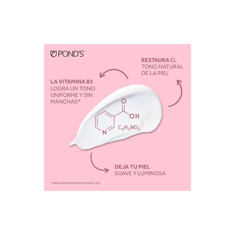 Cuida y protege tu piel con la crema facial Pond's Clarant B3 SPF 15. Su fórmula humecta sin sensación grasosa y desvanece las manchas en la piel causadas por el sol.