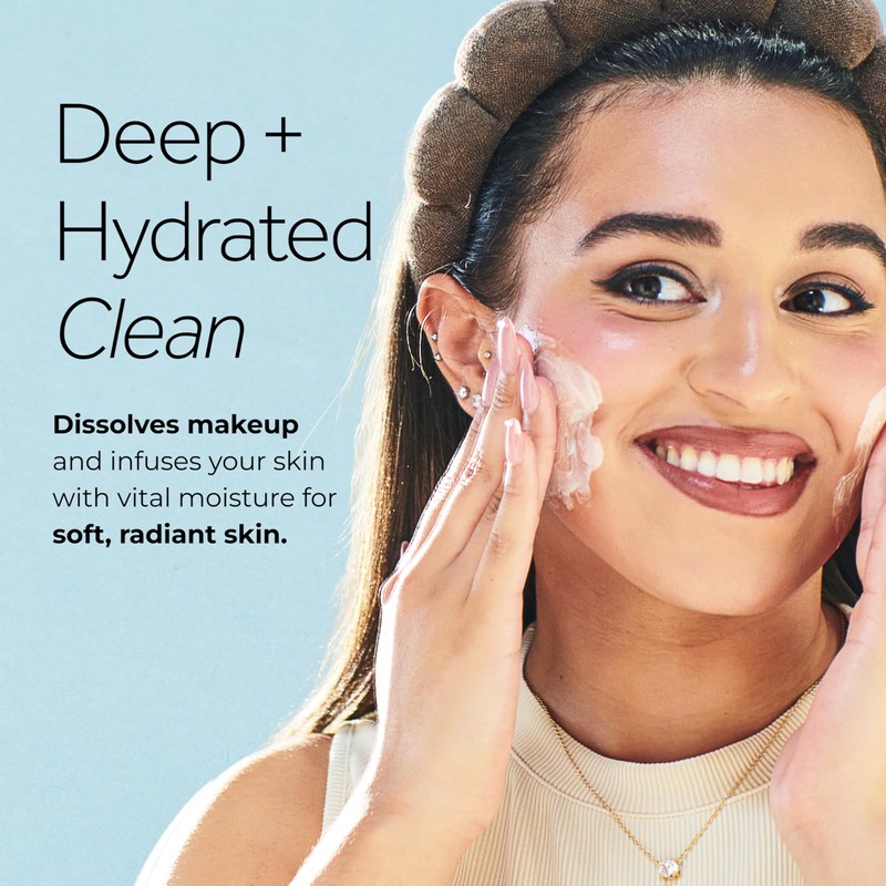 - Dissolves all traces of makeup and moisturizes for soft, radiant skin.