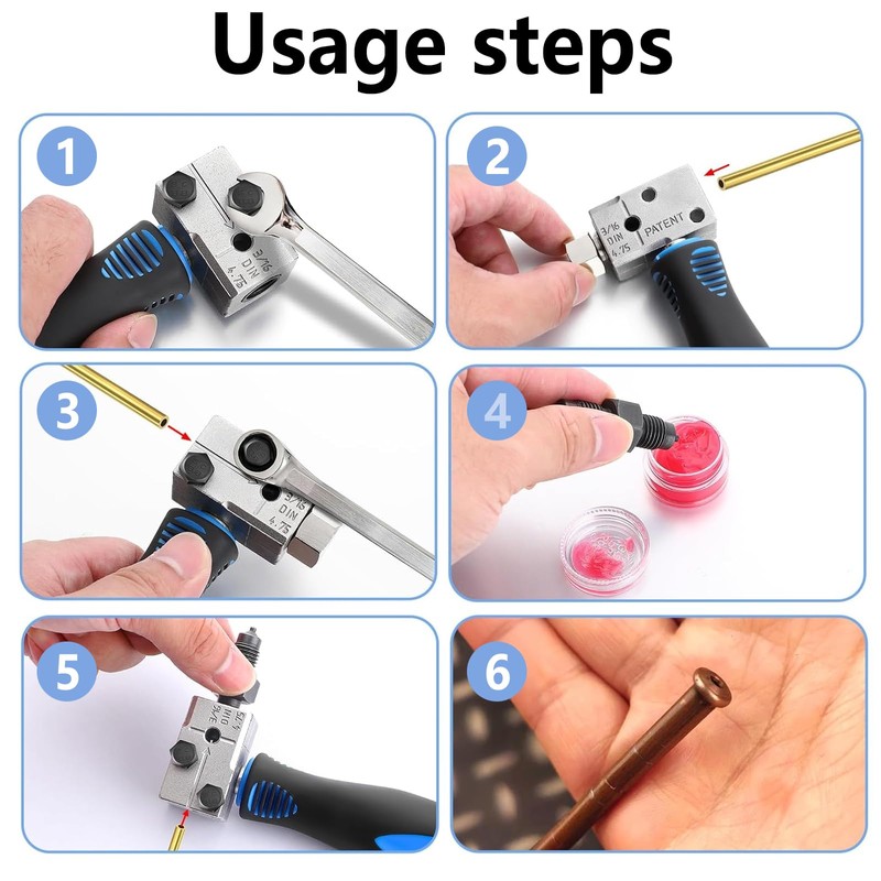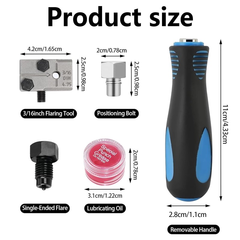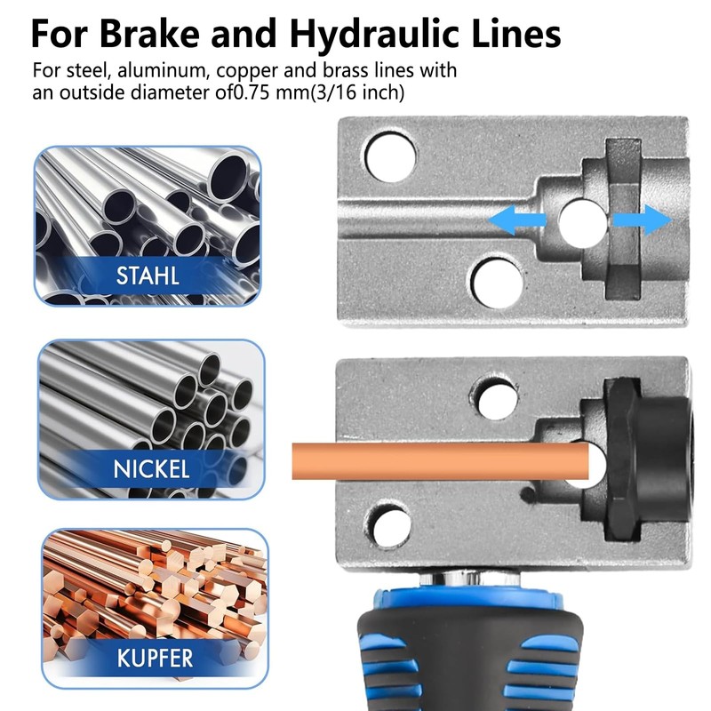 - STURDY AND DURABLE Our flaring tool is made of high quality metal, which is sturdy and durable, ensuring long-term use without deformation. It is suitable for brake lines made of steel, copper and aluminium. It expands precisely to 4.75mm, durable construction prevents leakage and ensures lasting performance, ideal for demanding automotive repairs