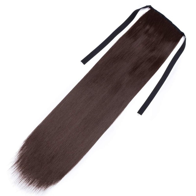 Ponytail Extension 22inch Long Straight Pony Tails Tie up with Clip in Wrap around Hairpiece Synthetic(Brown)