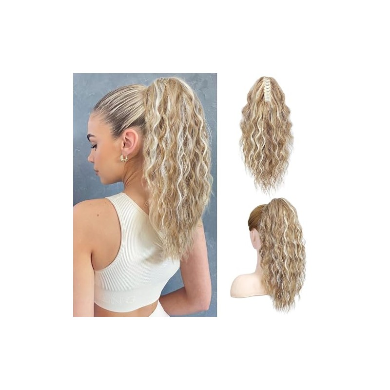 Ponytail Extension for Women Drawstring Ponytail Long Curly Wavy Ponytail 18 Inch Synthetic Clip in Ponytail Hair Extensions(86/10)