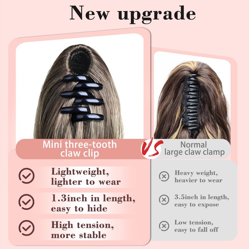 - 【Quickly and Easy】This Claw clip ponytail extension features a newly upgraded claw gripper design.The small clip has great grip, is scratch-resistant and non-slip for stable wearing.The wearing process is also very simple. You can wear the ponytail firmly on your head in a few seconds.