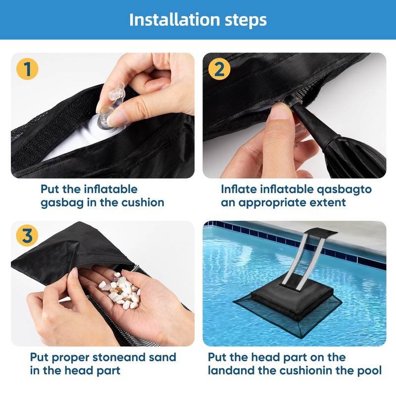 • 🐸Ease of Setup: Without any complicated assembly, With just a quick two-minute inflation of the mat, you'll have the ramp ready to go. position it a mere 7 to 9 feet away from your pool skimmer, and you're all set. Notice: Since frog escape ramps are inflatable if filled with air, they will float too high preventing Critters from escaping, which defeats the purpose. inflate Up to 80% is enough to prevent sinking and they work fine.