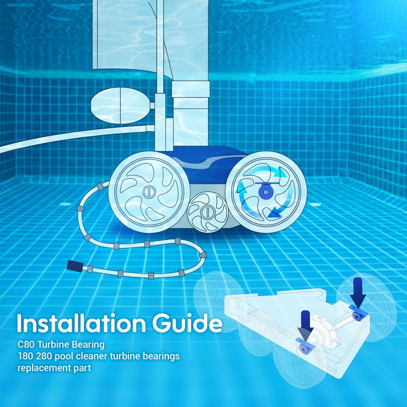 - C80 turbine bearings provide smoother operation, reduce friction and vibration, and minimize noise during operation, making the pool cleaner quieter in use and enhancing your experience.