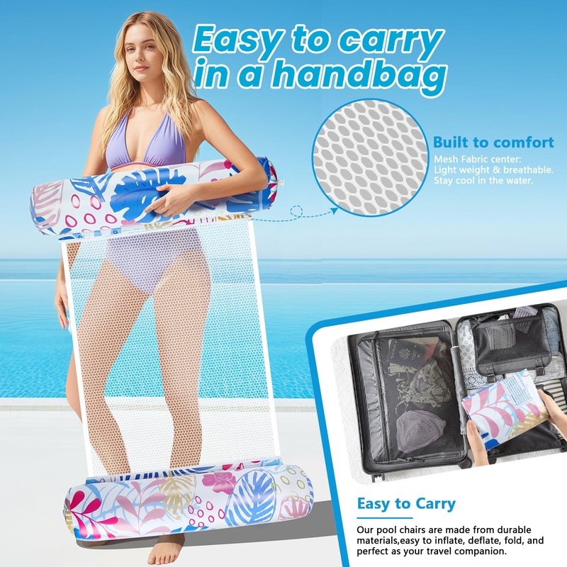 Pool Floats - 2 Pack Pool Floats Adult Size, Non-Stick PVC Pool Float Lounger Water Hammock, Inflatable Rafts 4-in-1 Multi-Purpose