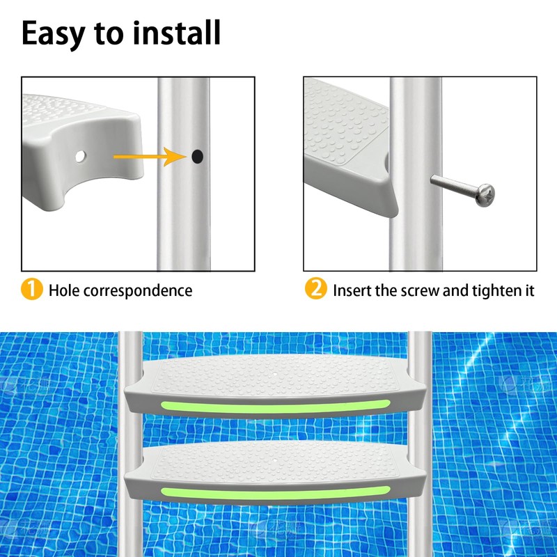 • EASY INSTALLATION - Each set includes 3 pool ladder steps, 6 corrosion-resistant stainless steel screws, and 3 luminous light strips, offering a complete package to simplify the installation process.