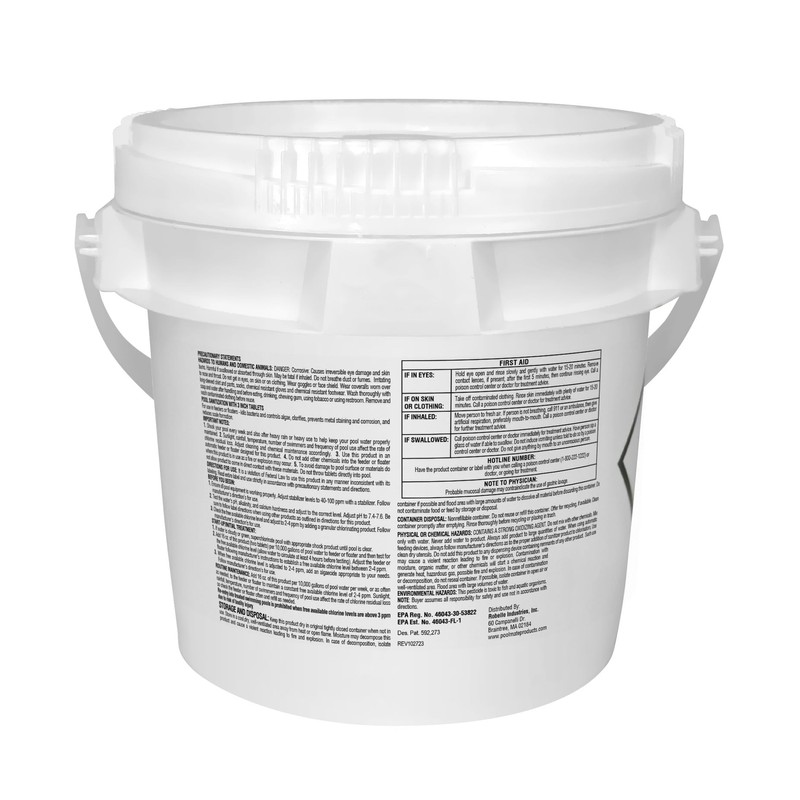 - Sanitizer, clarifier, stain inhibitor, algae control, descaler, sunlight protector all in one slow-dissolving tab