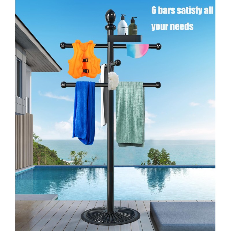 - 【Holds 6 Towels】6 metal poles Allow as many as 6 wet towels to put on it. Elegant design, makes it more than a towel holder, it's also a perfect art to decorate your pool and show your taste.