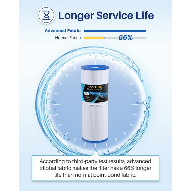 - 【EASY TO CLEAN】Uniformity and high-performance trilobal fabric make it easier to capture and release stains, so it's easy for you to wash the filter after use. It is recommended that you clean the cartridges every month dependon usage to maximize your pool's performance.