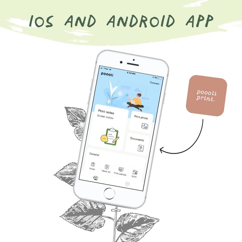 - BLUETOOTH - No wi fi needed. Simply connect to any smartphone (Android, iOs, and others) with Bluetooth and open the Poooli app. Select a picture from your camera roll and you're ready to print!