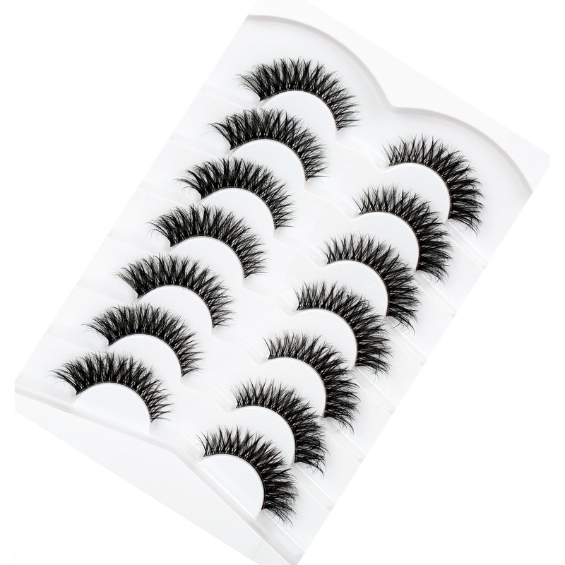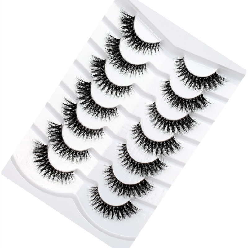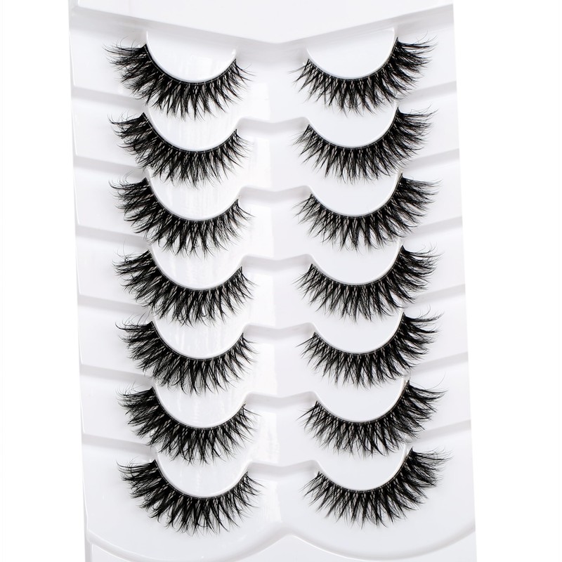 Pooplunch False Eyelashes Fluffy Cat Eye Look Natural Volume Wispy Short Lashes 8D Faux Mink Wispies Lashes Fake Eyelashes Strips 7 Pairs Pack
