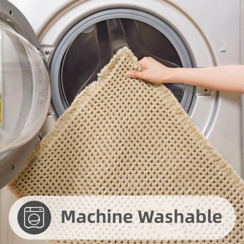 Poowe 17x24 Inches Non Slip Waffle Bath Rug with Tassels Decoration Super Absorbent Microfiber Bath Mats for Bathroom Floor Machine Washable Rubber Backed Ultra Soft