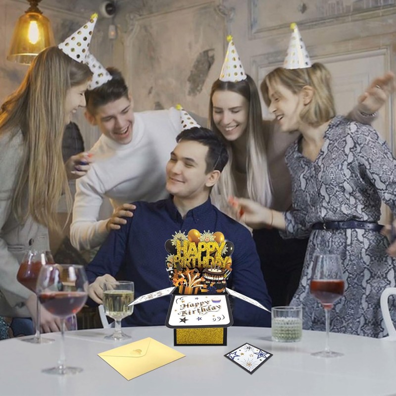- 💛【Memorable & Worth Collecting】- With the 3D birthday gift box design, when open it, pop up a surprising happy birthday, cake, gift, etc. The happy birthday pop up card will be touched and delighted by this card. This sweet happy birthday greeting card is exquisite and unique, perfect for your loved ones.