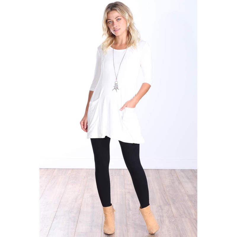 Popana Womens 3/4 Sleeve Tunic Top With Pockets for Leggings Made In USA Medium Pearl