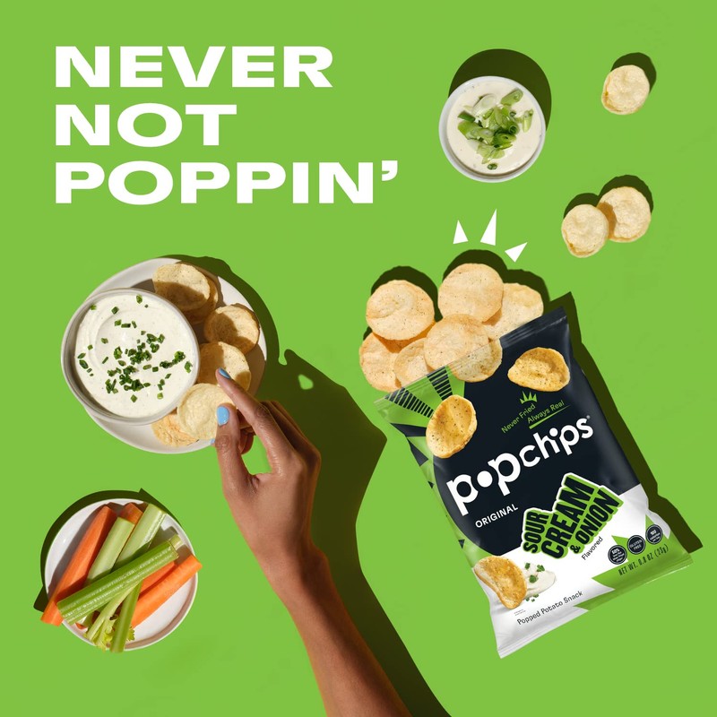 - All the popchips flavors are put tin' On the Ritz for your taste buds but there's something about how sour cream & Onion mix that means you won't be content with a single chip. 12 pack of 0.8 oz. Bags of popchips Sour cream & Onion