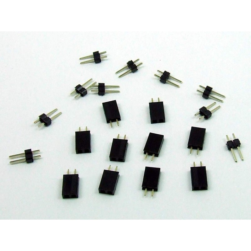 - Pack of 10. x female connector 2-pin 2.54 mm / 10 pieces. x Header 2 way 2.54 mm