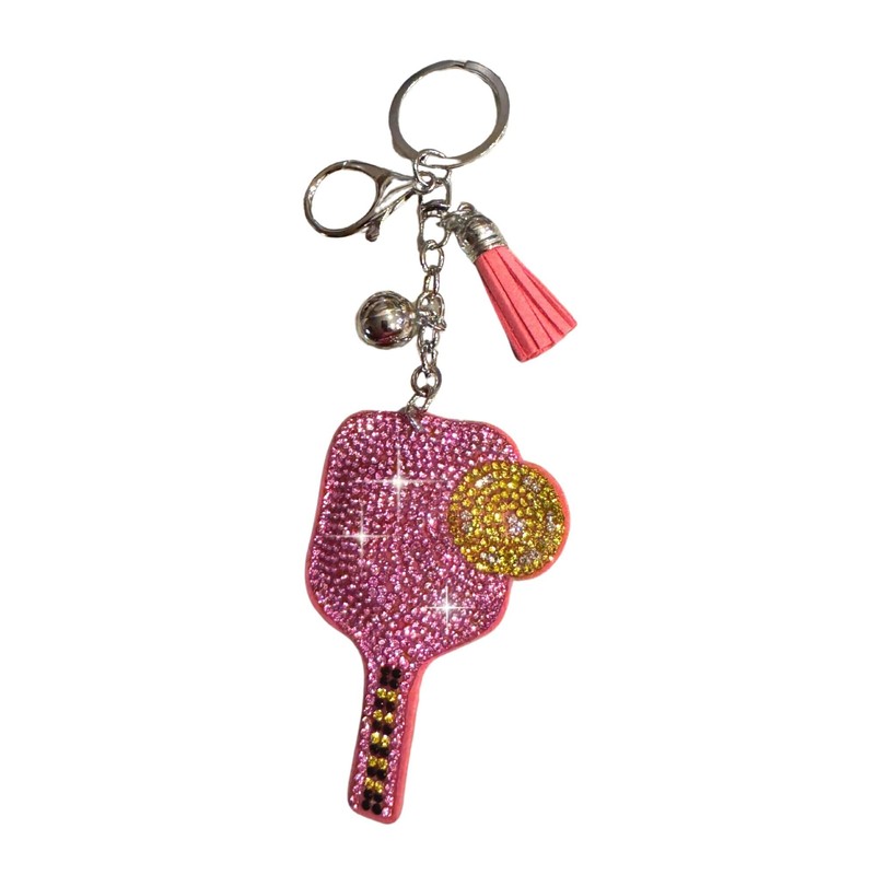 Popfizzy Double Sided Pink Pickleball Keychain for Women, Bling Purse Charm, Rhinestone Bag Charm, Pickleball Gifts for Women