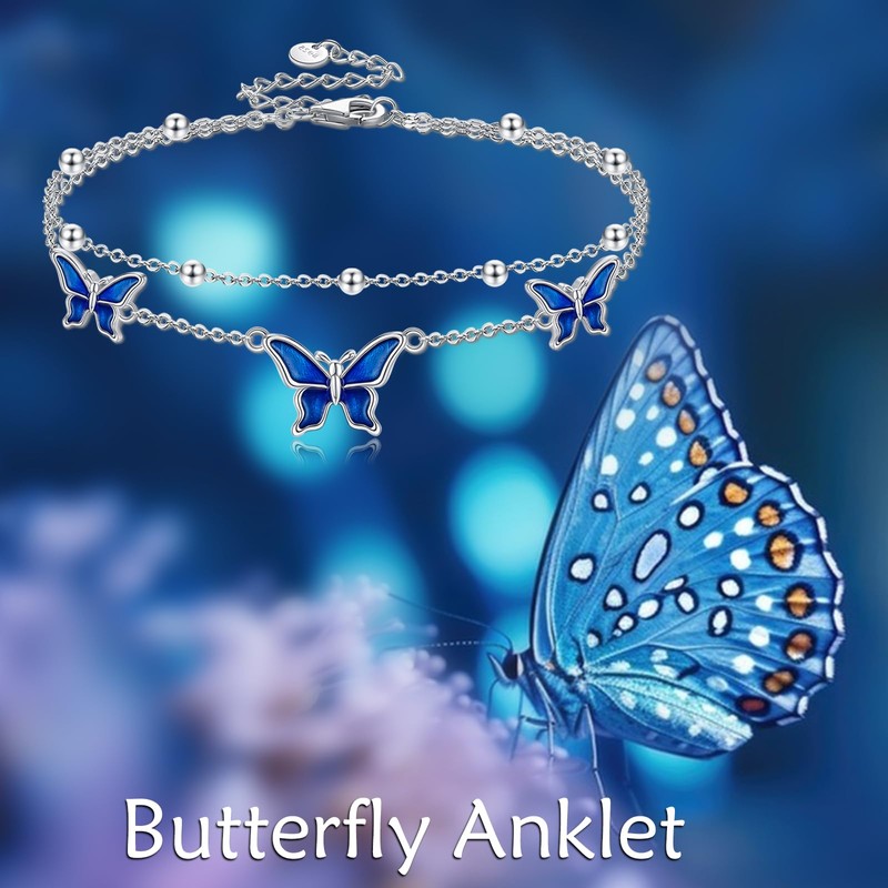 POPLYKE ankle bracelets for women 925 Sterling Silver butterfly anklet ankle bracelet
