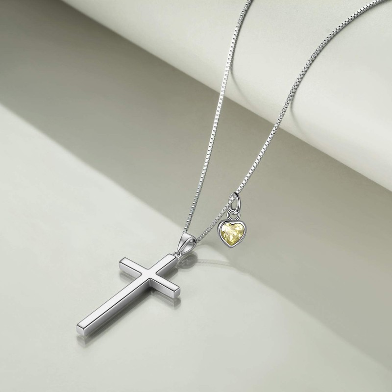 POPLYKE Cross Necklace for Women Sterling Silver August Birthstone Philippians 4:13 I Can Do All Things Necklace Mothers Day Gifts for Men Birthday 20+2'' (silver-08 August)