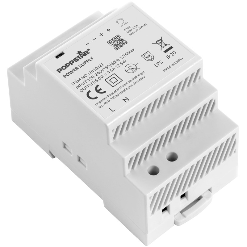Poppstar DIN rail power supply P-60-5- 5V 22.5W (input 100-240 V AC 50/60 Hz, output 5 V DC 4.5 A 22.5 W)