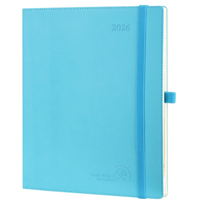 POPRUN 2026 Planner (Large - 8.5'' x 10.5'') - 2026 Weekly Calendar (Jan. 2026 - Dec. 2026) with Hourly Time Slots, Weekly/Monthly Appointment Book for Time Management - Leather Soft Cover - Blue Green