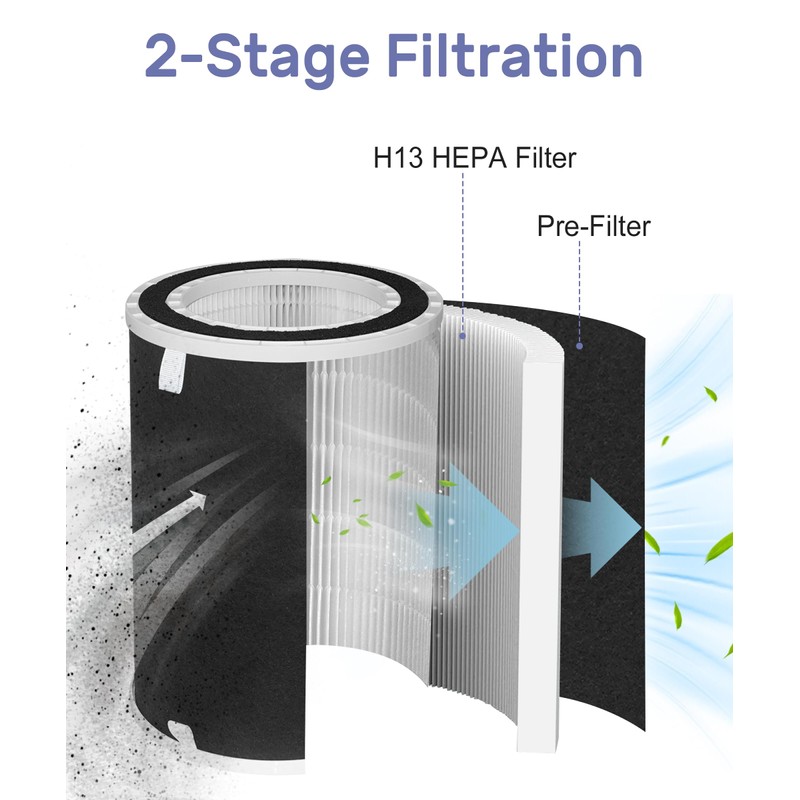 - Efficient Filtration: Air filter with Efficient HEPA filter a Activated Carbon Pre Filter, brings you better life