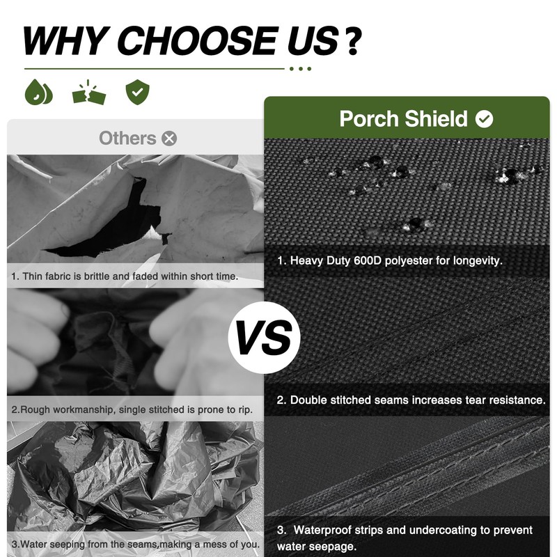 Porch Shield is a professional outdoor cover brand manufacturer. Professional design team and excellent after-sales service team make our product enjoy good reputation among clients. Our product line includes mainly GARDEN FURNITURE COVER, like grill cover, hot tub cover, fire pit cover, table cover, cooler cart cover. And OUTDOOR MACHINE COVER, like generator covers, push lawn mower cover, 0 turn mower cover, snow blower cover.