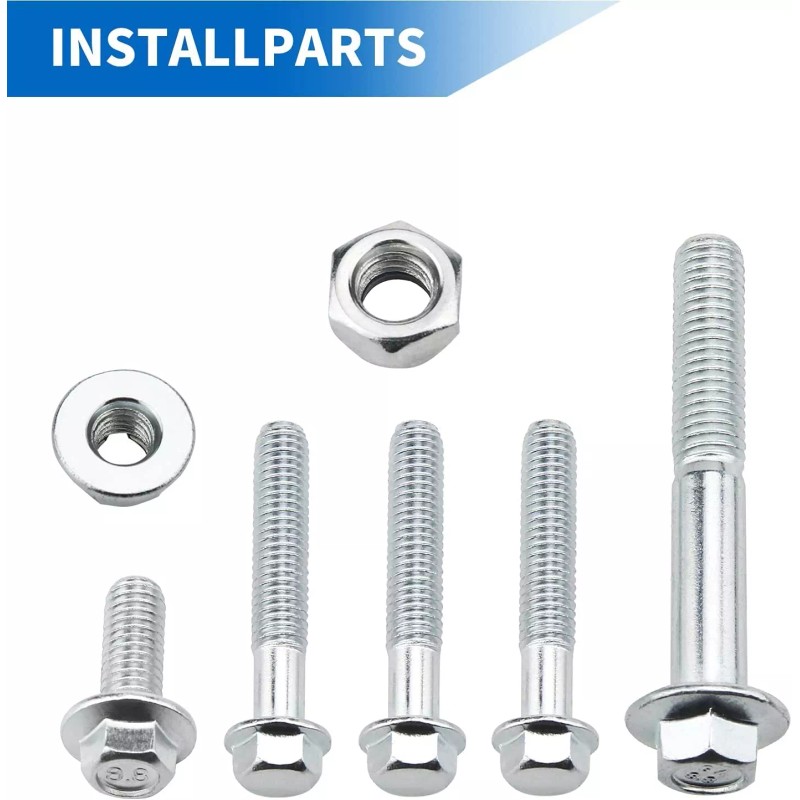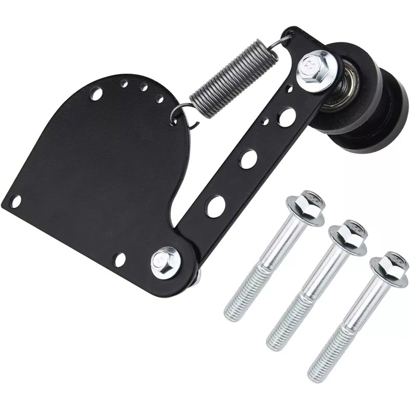 Simple installation steps: STEP 1: It is easier to connect one side of the spring to the curved side of the mounting plate, this side has 2 small holes (the top hole has greater tension than the bottom hole). STEP 2: In the tensioner Among the 5 screws/bolts, 2 lock nuts and 2 washers included in the kit, use only small screws/bolts and lock nuts to connect the tensioner arm to the mounting plate.