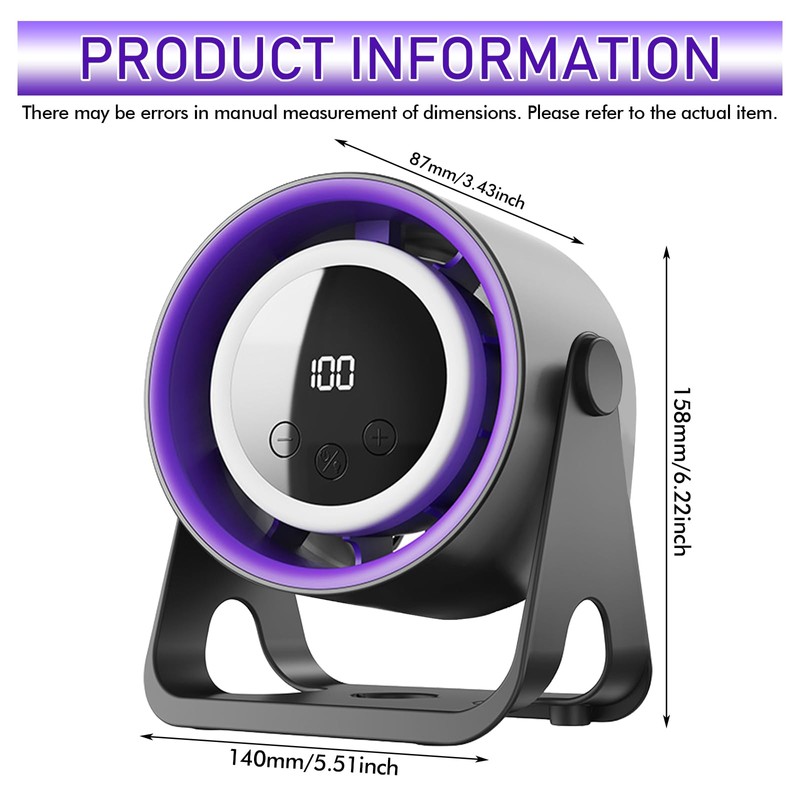 • Intelligent digital display & flexible placement: table fan USB Keep an eye on the current fan speed thanks to the LED digital display. The USB fan quiet is lightweight, portable and perfect as a small fan for desk, office fan or cooling fan for home.