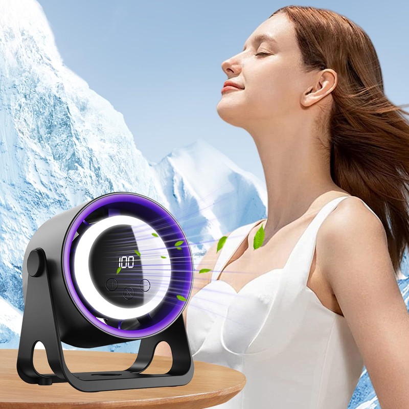 • Improve Indoor Air Circulation The table fan USB can promote indoor air circulation. In conjunction with an air conditioner, it can help to quickly adjust the indoor temperature and balance the room temperature on hot summer days. The battery table fan ensures a pleasant indoor climate.