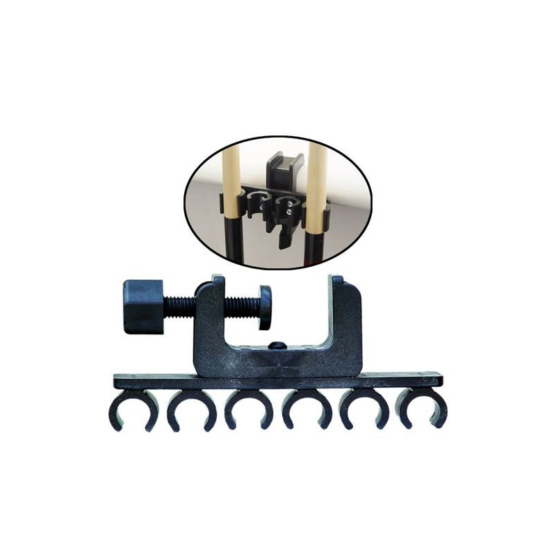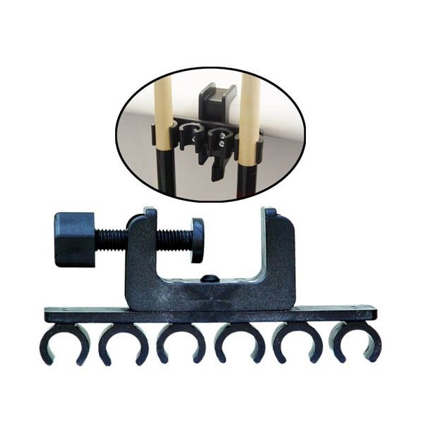 • Just clamp this handy cue holder onto your table and keep your cues at your side