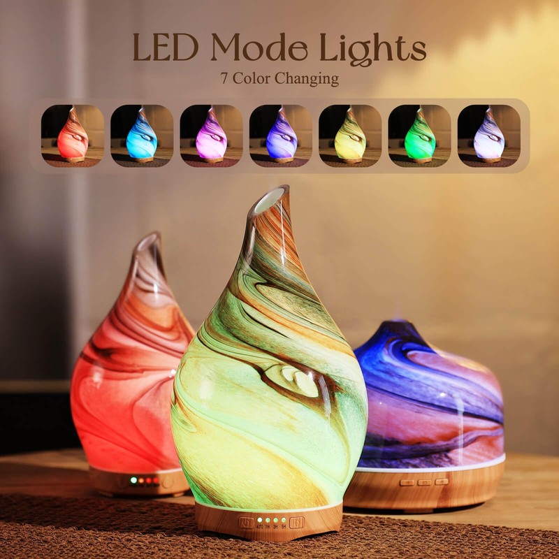 - UNIQUE ART DECORATIVE DESIGN - Our 280ml glass essential oil diffuser has an elegant starry pattern glass cover and wood grain decorative base. It is very suitable for your bedroom, living room, children's room, study room, office, and yoga room.