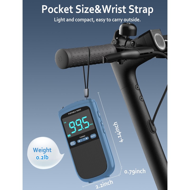 • Easy to carry& Lock Screen: This portable am fm radio is ergonomically designed for a comfortable grip. This pocket radio is compact and lightweight, the size L4.14 "x H2.2" x W0.79 "fits in pockets and backpacks. The attached wrist strap make this portable am fm radio easy to carry outside. The pocket walkman radio is ideal for outdoor camping, hiking, walking, sports and field work. The portable short wave radio has a lockscreen function to avoid accidentally changing settings.