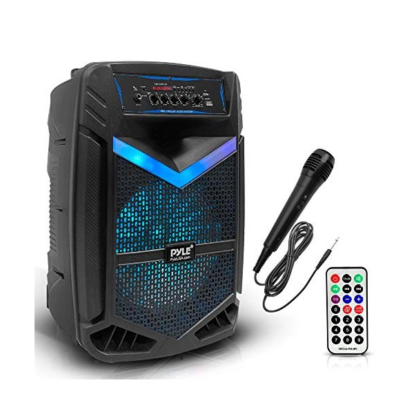 • RECHARGEABLE BATTERY: This Pyle PA speaker is great for karaoke, stage performances & crowd control. It is fully portable, thanks to its built-in rechargeable battery w/ level indicator, convenient wheels & carry handle so you can take it anywhere