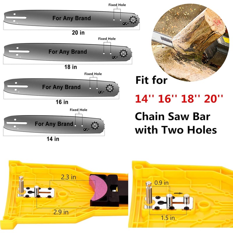 - COMPATIBILITY Our chainsaw sharpener is suitable for most 14"/16"/18"/20" flat tooth chainsaws with 2 hole chainsaw rods. Chainsaws with single or no holes are not compatible. One hole is fixed and the other hole can be moved forward and backward, which makes it very flexible