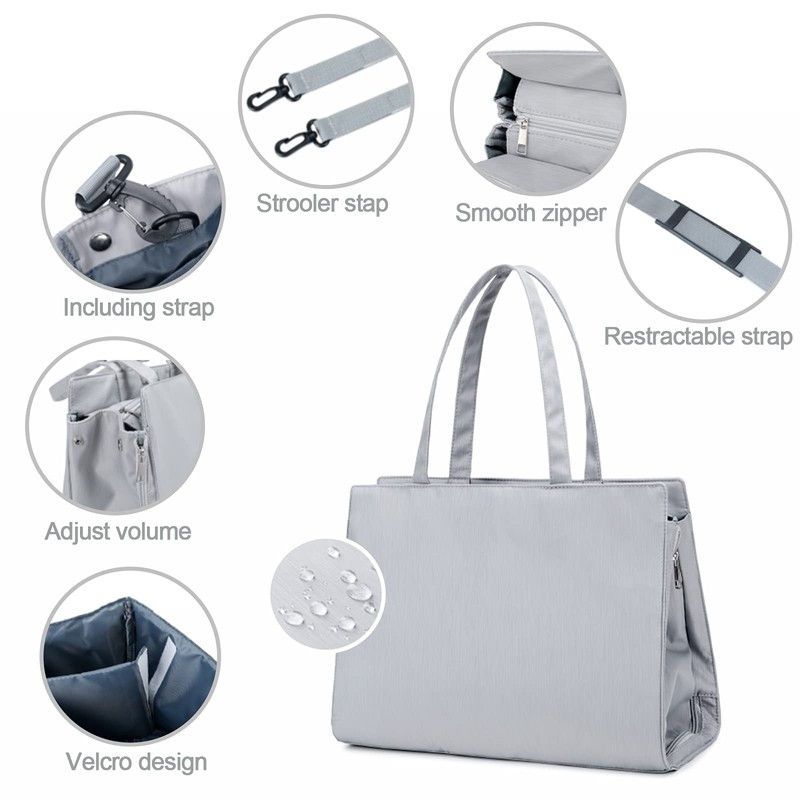 Portable Diaper Bag Tote, 3 in 1 Large Diaper Bag, Baby Bag, Multifunctional Diaper Bag, Tote Insert Organizer, Grey