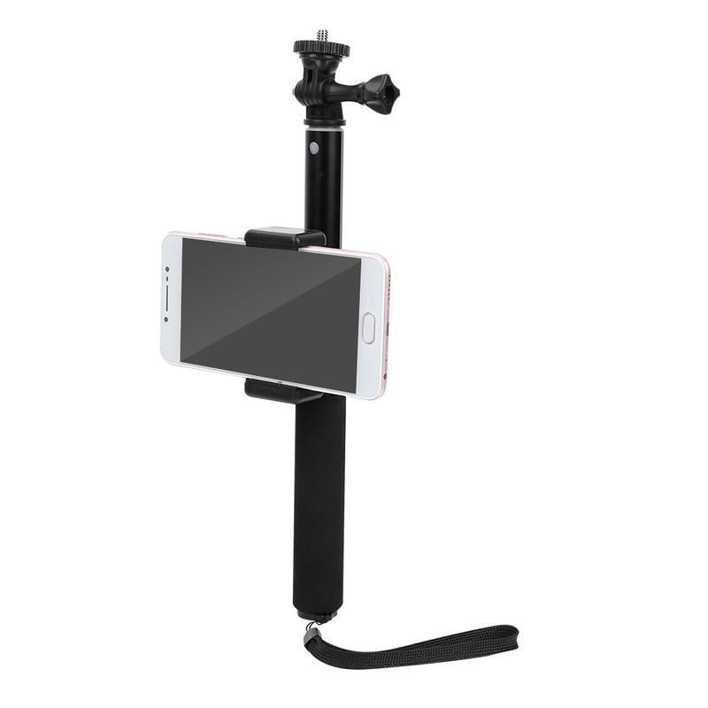 3. With a phone clip, allows you mount phone on the stick and control camera via phone.