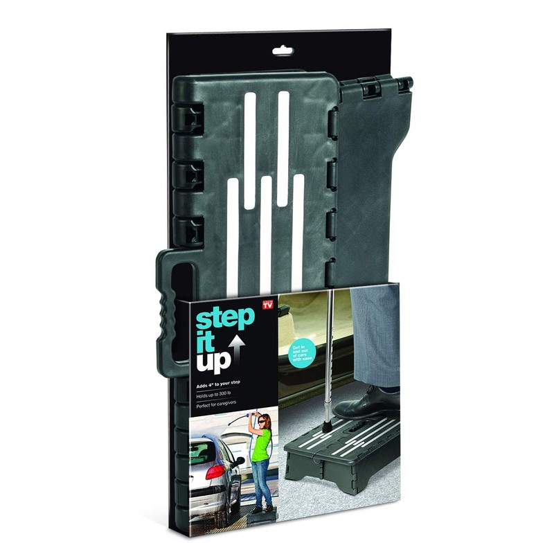 Ease your step anywhere you go with the Portable Folding Step. Ideal for your car, bathtub, or doorway, this 4" step will cut your stepping effort in half. With a 300 lb limit, the large platform and non-slip grips provide optimal stepping stability when in use. The simple folding design promotes easy storage and travel capabilities. If you're a caregiver, provide easy stepping for your patient with the Portable Folding Step.