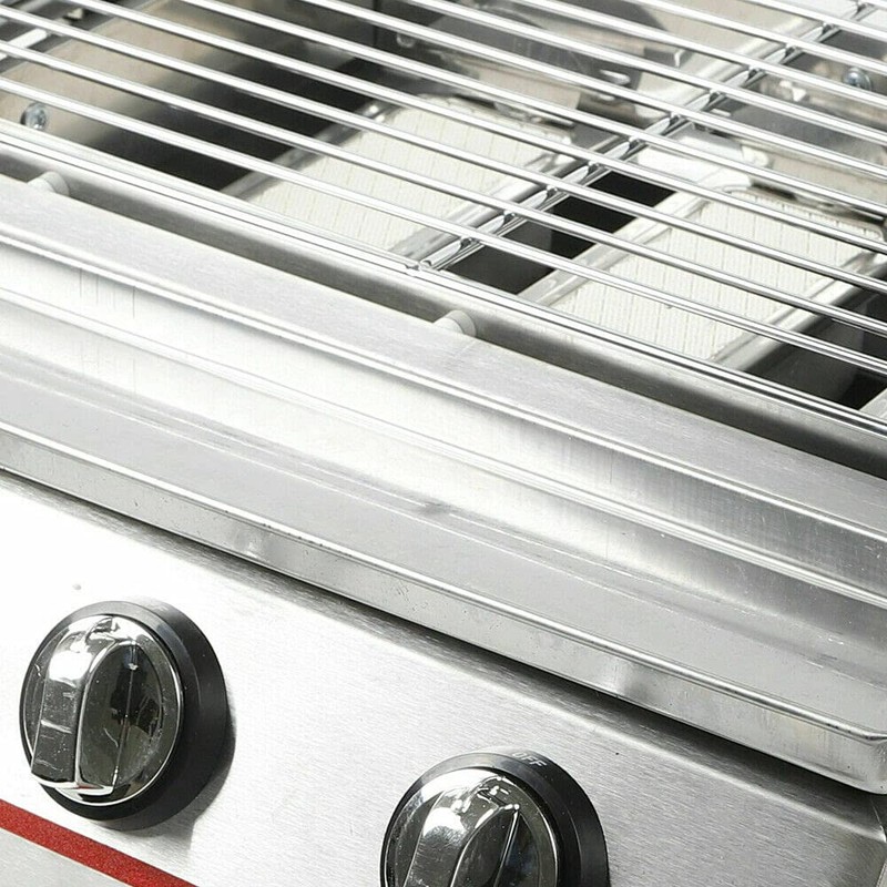 Portable Propane 3 Burners Outdoor Gas Cooker Camping Stove Grill BBQ Picnic. Whether it is used as a commercial barbecue grill or a household kitchen barbecue grill, the propane desktop small barbecue grill is very convenient because it is small and convenient to move, easy to carry and clean, and is suitable for outdoor courtyard barbecues.