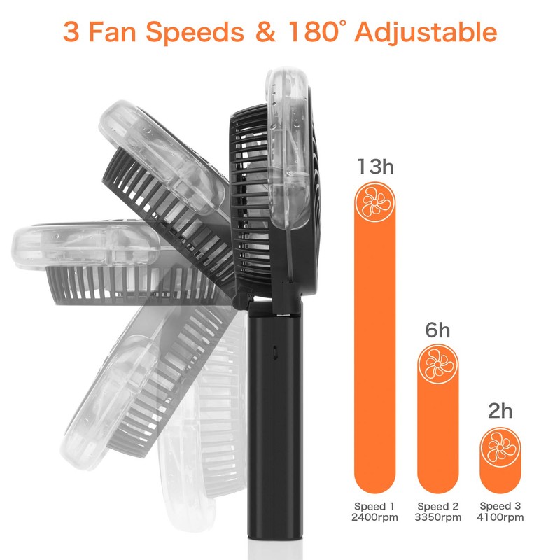- 【2022 Upgraded Version】 Equipped with a 3000mAh battery and 50ml water tank, up to 10h cooling and 1h misting, providing a long-lasting cooling breeze. Still very lightweight, only 0.5lb, easy to hold with hands
