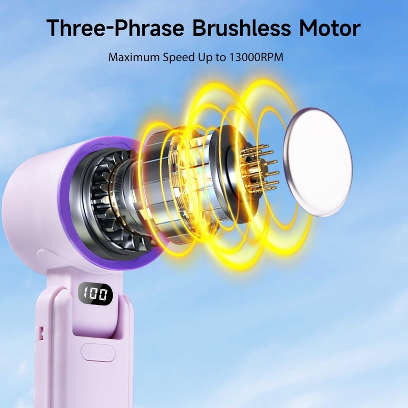 - Enjoy The Ultimate Cooling Experience: The portable handheld turbo fan features an advanced 6-blade design and a high-speed three-phase brushless motor, delivering powerful airflow with speeds up to 9m/s and 10,550 rpm which is 3X stronger than ordinary handheld fans. With advanced cooling technology instantly cool you down in 3 seconds even in the hottest weather. This powerful mini fan is definitely the ultimate solution for staying cool on hot journeys.