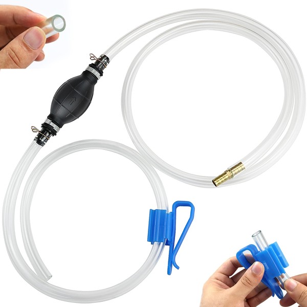 - 【Efficient Manual Siphon Pump】Made with a thick rubber siphon bulb for rapid liquid flow, secured with heavy-duty aluminum ends and metal springs for durability. Comes with two sturdy, transparent PVC hoses (1.2m + 0.8m) that are resistant to fuel, high temperatures, and corrosion, allowing easy reach into containers for fluid transfer.