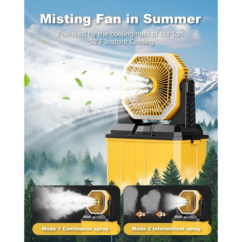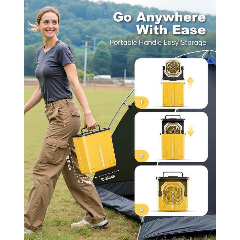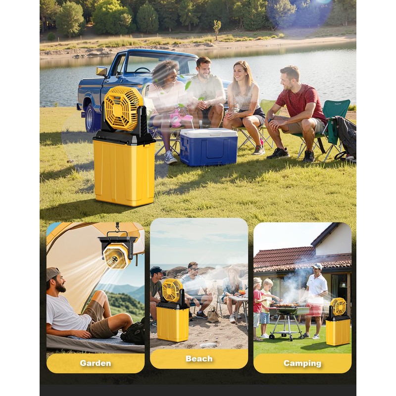Portable Misting Fan, Rechargeable Outdoor Cooler, Battery Operated Personal Fan with3 Speeds & 8L Bucket for Patio, Camping,Hiking, Backyard, Travel, Desk,Pool, Beach, Yellow