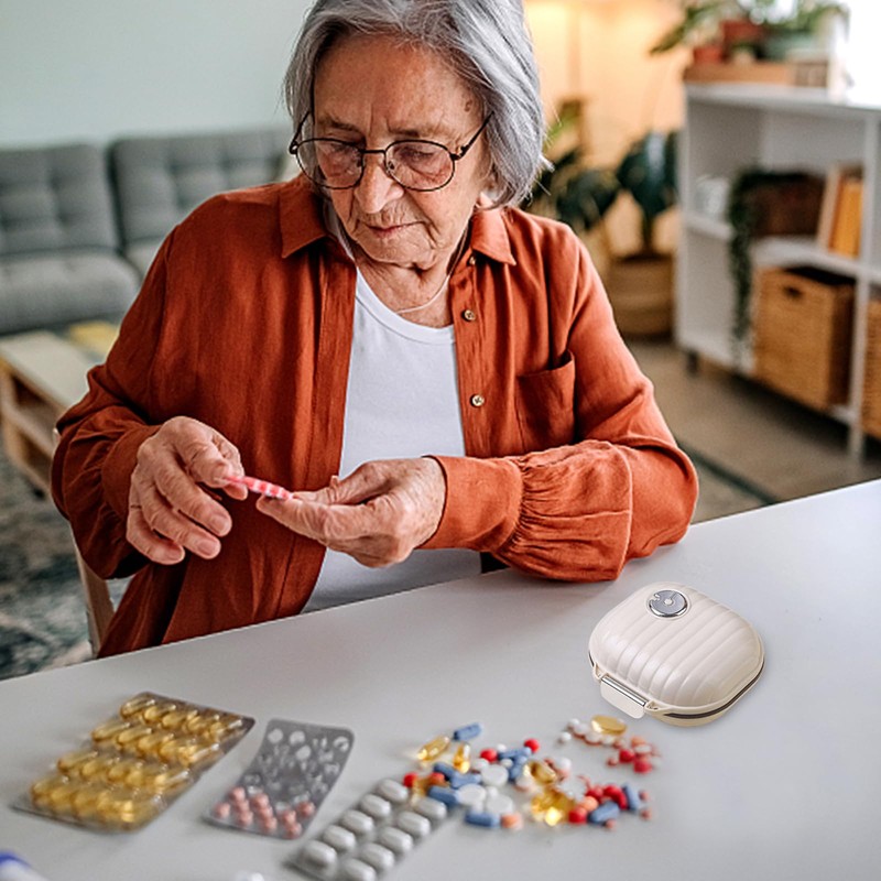 - Double lid protection: no more worrying about it tipping over by a careless touch on your part or by the insidious touch of your child. The double protection keeps the lid closed at all times, so you don't have to worry about the pills being scattered everywhere because they fall off.