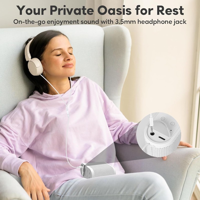 - 【Ultra-Compact Travel Sound Machine】Take this portable white noise machine anywhere for better sleep. It’s small enough to fit in your bag or pocket but comes with a rechargeable battery, 21 soothing sounds, a customizable timer, adjustable volume, memory function, and a 3.5mm headphone jack. Enjoy peaceful sleep wherever you are