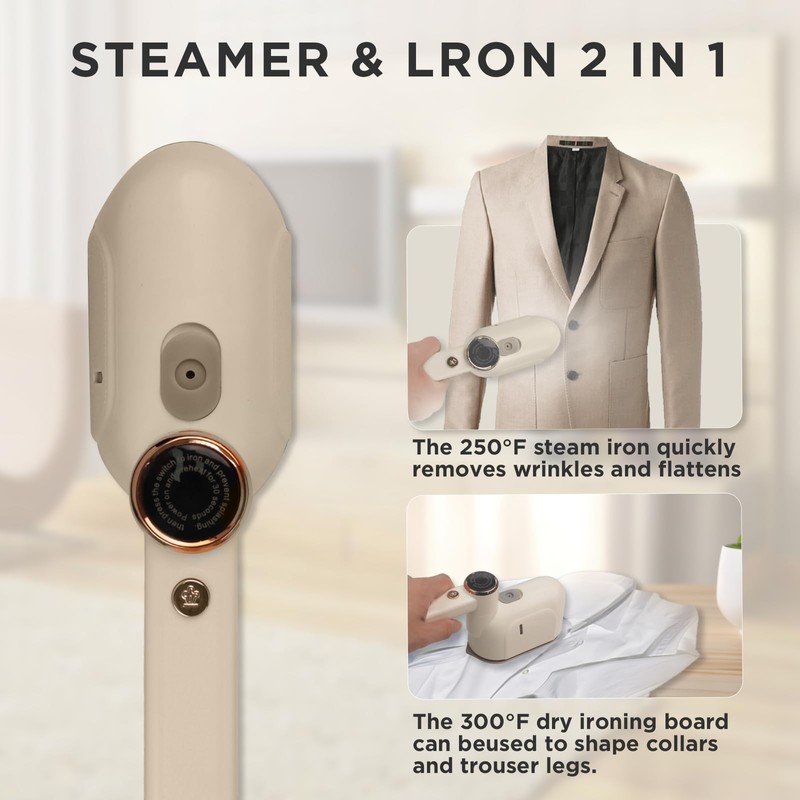 - 【Steamer & lron 2 in 1】The 250°F steam iron quickly removes wrinkles and flattens. The 300°F dry ironing board can be used to shape collars and trouser legs. It can effectively soften the fabric deeply and remove various stubborn creases