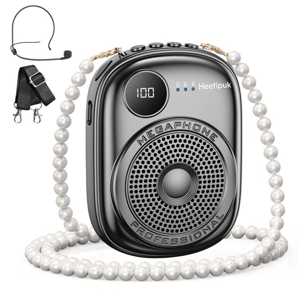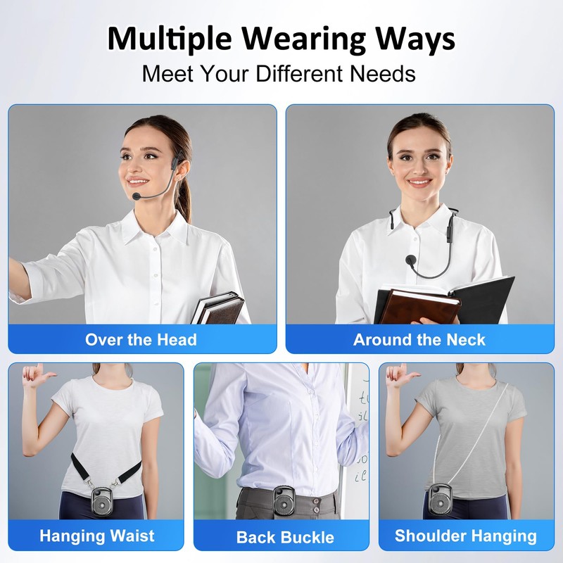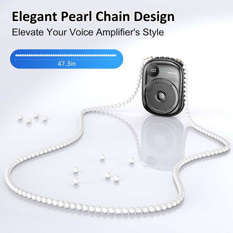 • 【Versatile & Unique Design】: The portable voice amplifie’s elegant pearl chain design offers multiple wearing options: head-mounted, neck-hanging, belt clip to fix it on your belt or pocket, waist-hanging, and shoulder-hanging. Perfect for a range of activities including teaching, meetings, training, guiding tours, public speaking, and fitness instruction.