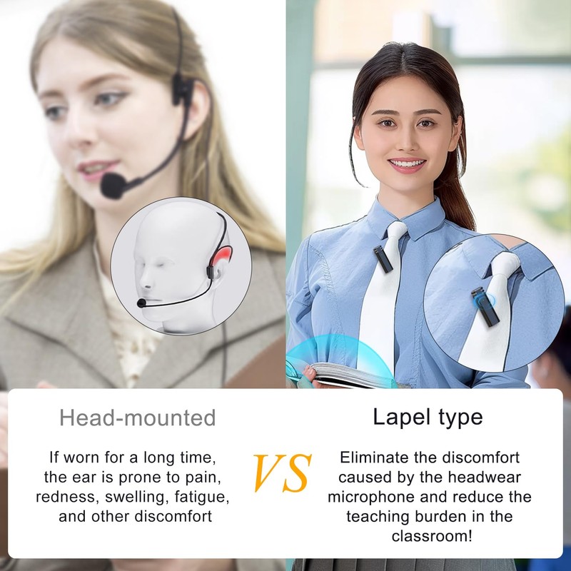 - Reduce Teaching BurdenOur teacher microphone for classroom includes a wireless lavalier microphone that easily clips to a collar or tie. This design provides a clear advantage by eliminating the discomfort of traditional headset microphones. It greatly lightens the teaching load, making classroom instruction more comfortable and efficient!